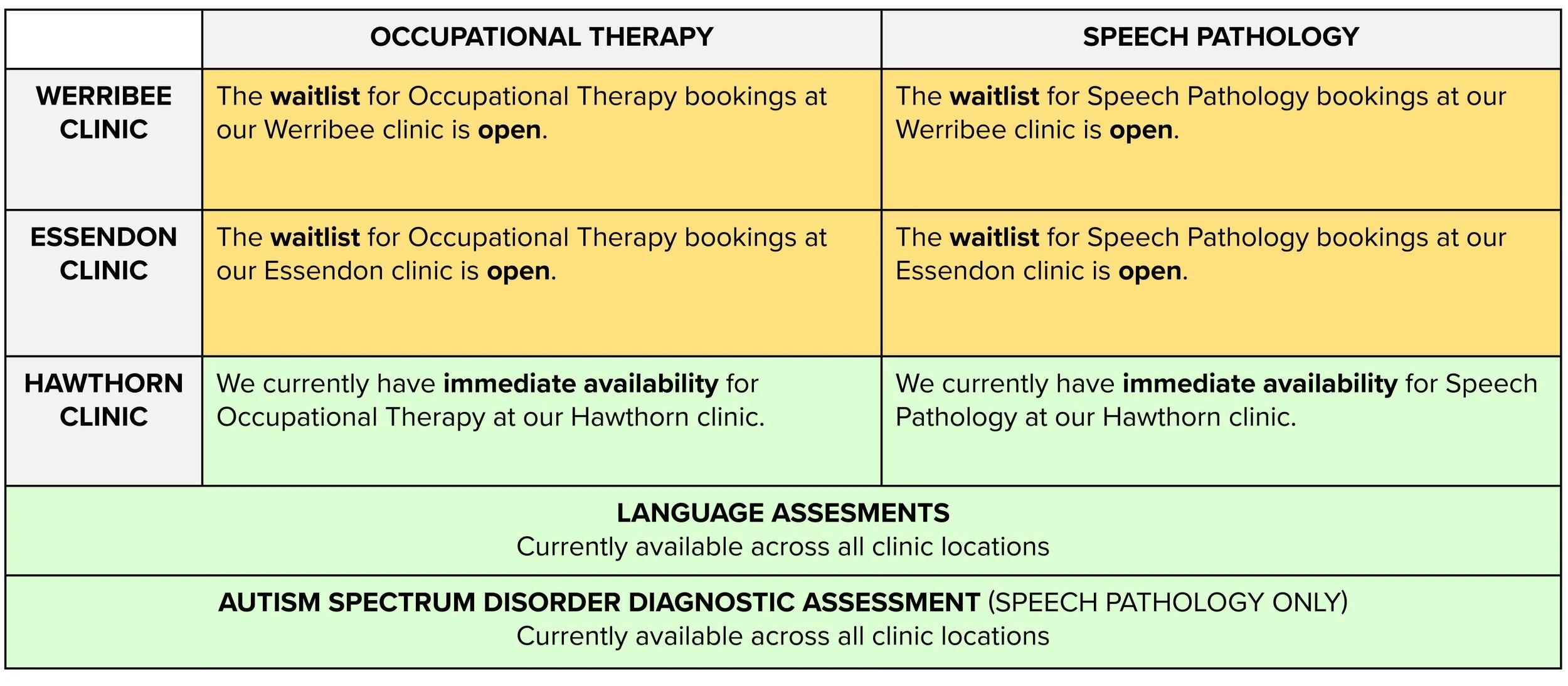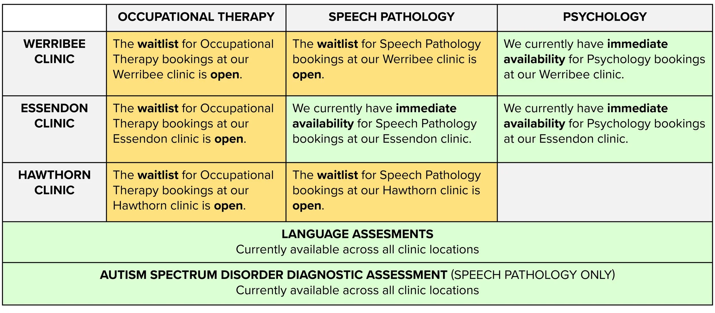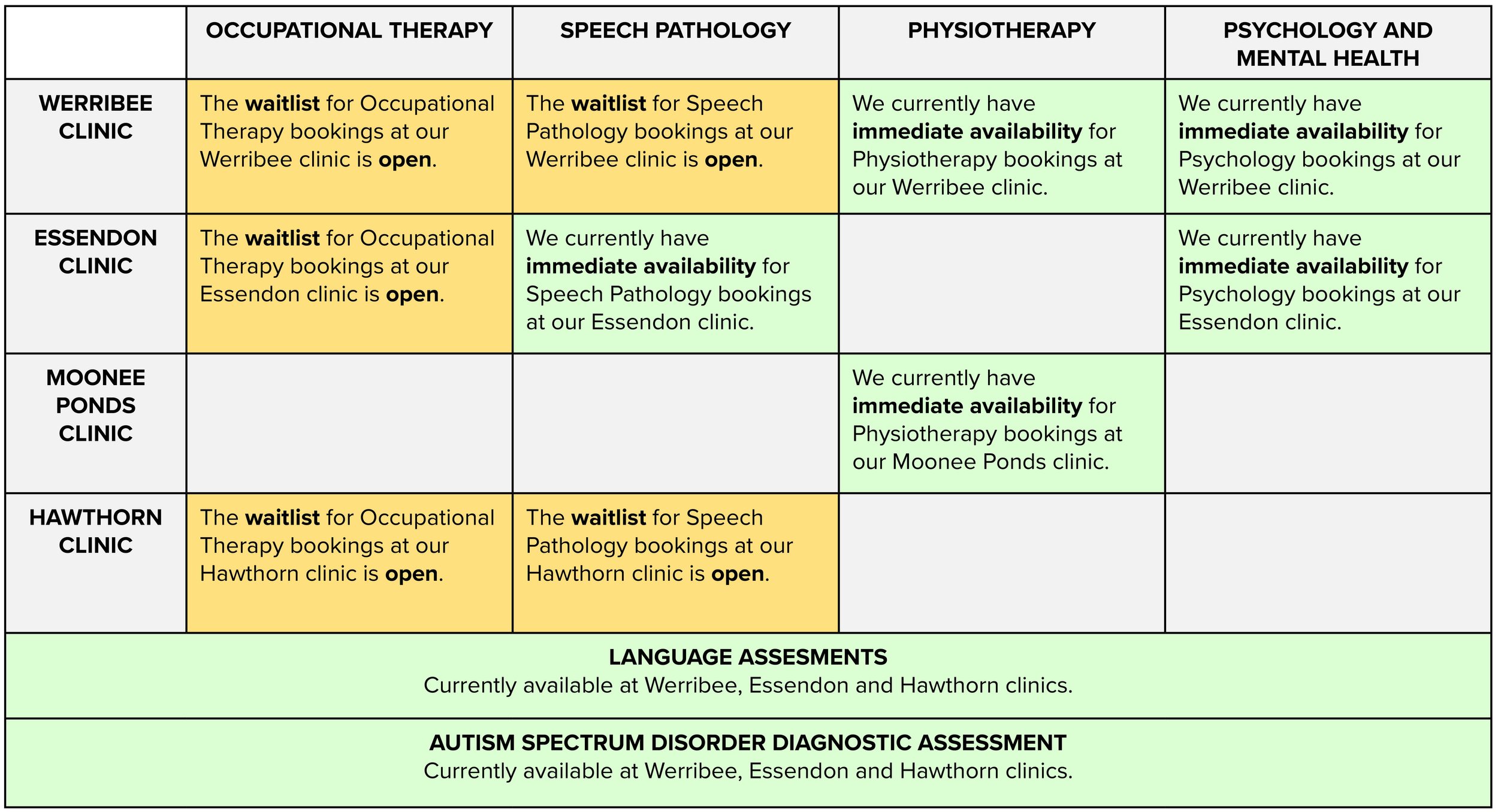 CLINIC AVAILABILITY STATUS: